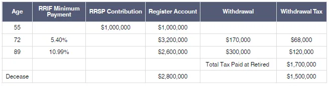 5. If funds remain in the corporation or RRSP or RRIF at death, deemed disposition rules apply under ITA s.70(5). Corporate assets may face multiple tax layers, and RRSP or RRIF may be treated as 100 percent taxable income. Even when withdrawals are delayed, tax leakage does not disappear. It spreads across decades, creating about $1,600,000 tax during retirement and another $1,500,000 at the estate level, totaling about $3,200,000.